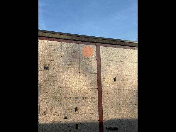 Situated at the front entrance of the Chapel of the Cross, near the beautifully maintained garden area and positioned parallel to the entrance cross, offering both visibility and a peaceful setting. Purchase two side-by-side mausoleum spaces in a highly desirable location, Located at Unit 4-A, Spaces A and B, Level 7. Includes lettering.