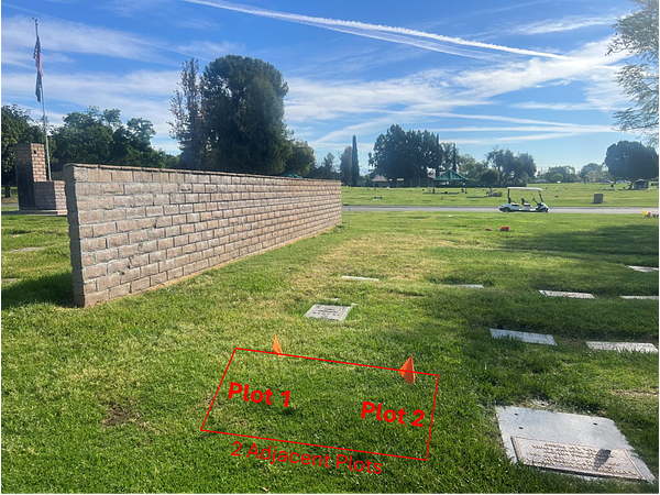 Both plots are level, accessible, and situated within a well positioned area with nearby pathways and maintained grounds. The location is also near a veteran designated area of the cemetery, offering a meaningful setting while remaining available for use by anyone.