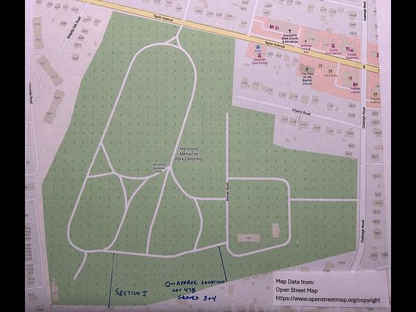 These two plots are located in Section J of Moreland Memorial Park located in Parkville Maryland