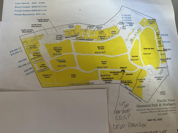 $38,000 burial plots in Pacific View Memorial Park & Mortuary