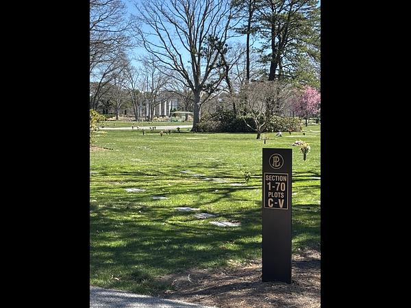 The plot is located in the "Sacred Grounds" of Pinelawn Memorial Park. It is a private Memorial Park. This plot inters 2 in the "Garden of Peace".