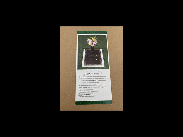 Includes 18 X 27 Metropolitan Ledger Bronze Memorial plaque. It's a double plot for 2.
