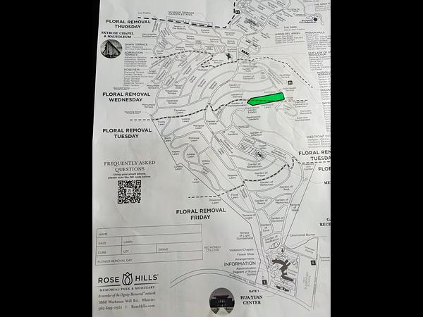 Nestled in Whittier's rolling hills, Rose Hills Memorial Park & Mortuary is North America's largest memorial park—a 1,400-acre haven of serene beauty renowned for its exceptional feng shui. Vibrant gardens, including the world-famous Pageant of Roses, tranquil lakes, the award-winning SkyRose Chapel, elegant mausoleums, and sweeping panoramic views create an atmosphere of timeless peace and harmony. In this uplifting setting, cherished memories are honored with lasting dignity and grace. A desirable single grave site is now available in the peaceful Garden of Commemoration (endowment care and transfer fees included). More plots in other sections available if interested.
