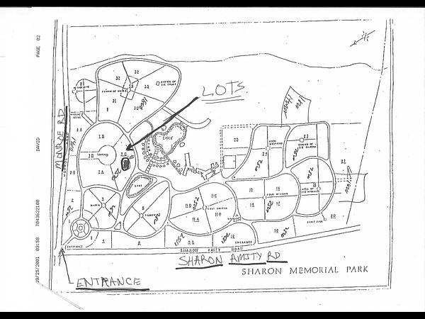 Section 7C, Lot 106D, Spaces 3 & 4, Singing Tower. Sharon Memorial Park is probably the best known cemetery in the Charlotte area. The Singing Tower section is conveniently located near the entrance with nice views. The attached map gives more details about the exact location.