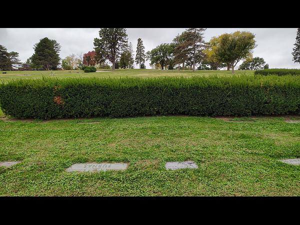 These three plots are in the Brook Lawn Garden section of Westlawn-Hillcrest Memorial Park inside the Garden Monument which is a Cross outlined by hedges. These 3 burial plots are on the inside of the Cross in Section 266, plots 7, 8 and 9.